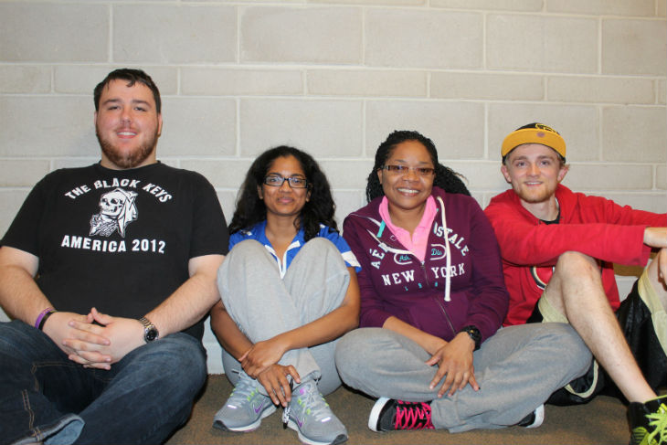 Photo: Students currently pursuing a Bachelor of Arts in Human Rights – Graeme Carlson, Teruni (Rahasin) Walaliyadde, Shaluckie Boatswain and Stephen Krzos – September 2014.