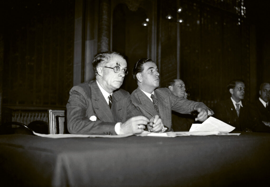 The first Director-General of UNESCO, Sir Julian Huxley (L) attends the organization’s first conference in Paris, France, 19 November–10 December 1946 PHOTO: AFP News