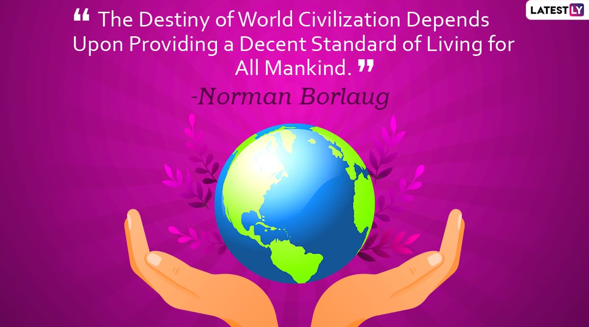 Quote Reads: “The Destiny of World Civilization Depends Upon Providing a Decent Standard of Living for All Mankind.” – Norman Borlaug